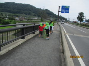橋の上から涼しそうな川の流れが見えます。あまり水量は多くなく、昔はこの辺の子どもたちは川に入って遊んだそうです。うらやましいなあ・・・