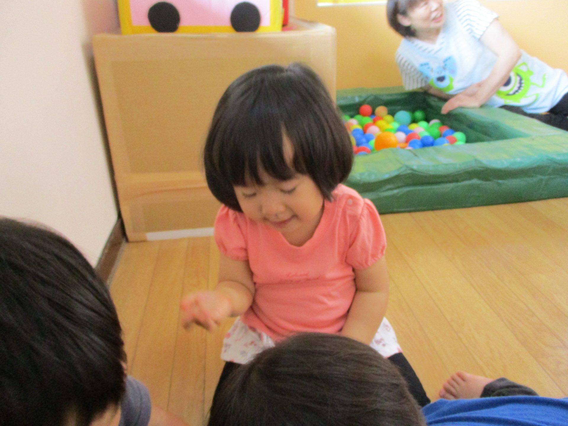 雨の日が続いたある日のこと。子どもたちがお部屋の片付けをしていると・・・お部屋にあるボールプールの中に黒い影が。