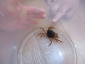 2週間ごはんを食べず、水がなくても元気いっぱいに動いていたサワガニ。