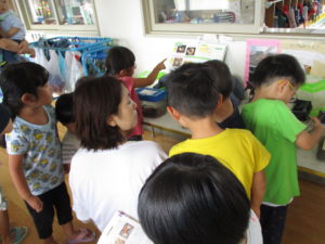 年中さんのお部屋に行くと、たくさんの生き物がお出迎えをしてくれました。