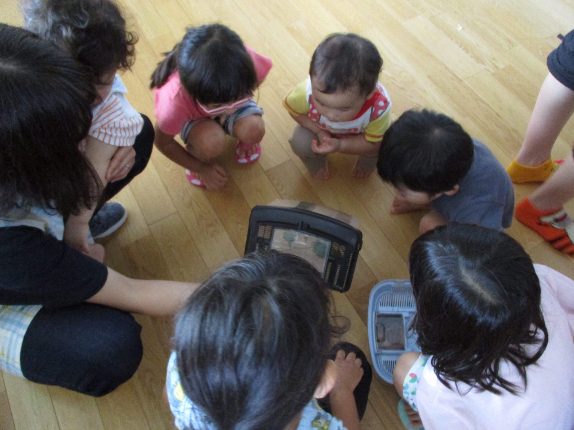 保育士や友達が生き物と関わる姿を見る中で、「自分も触ってみよう」「少し近づいてみよう」といった感情が芽生えているのではないかと思います。「友達と一緒に」という他者とのかかわり、経験を大切にしながら、子どもたちと成長していければと思っています。