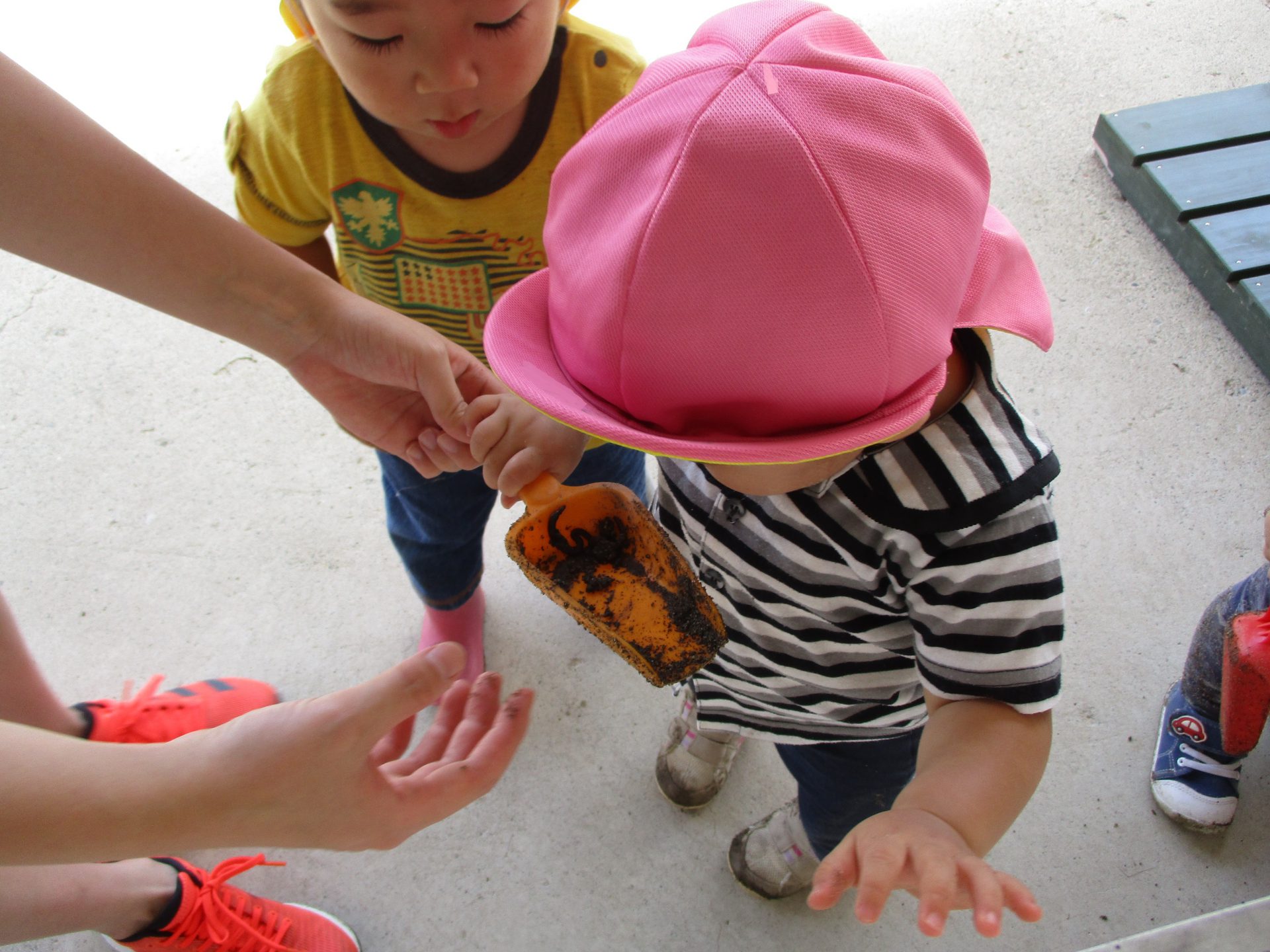 そんな子どもたちですが、4月当初は虫を見つけると「こ、わ、い」と言って後ずさりをしている様子がよく見られました。