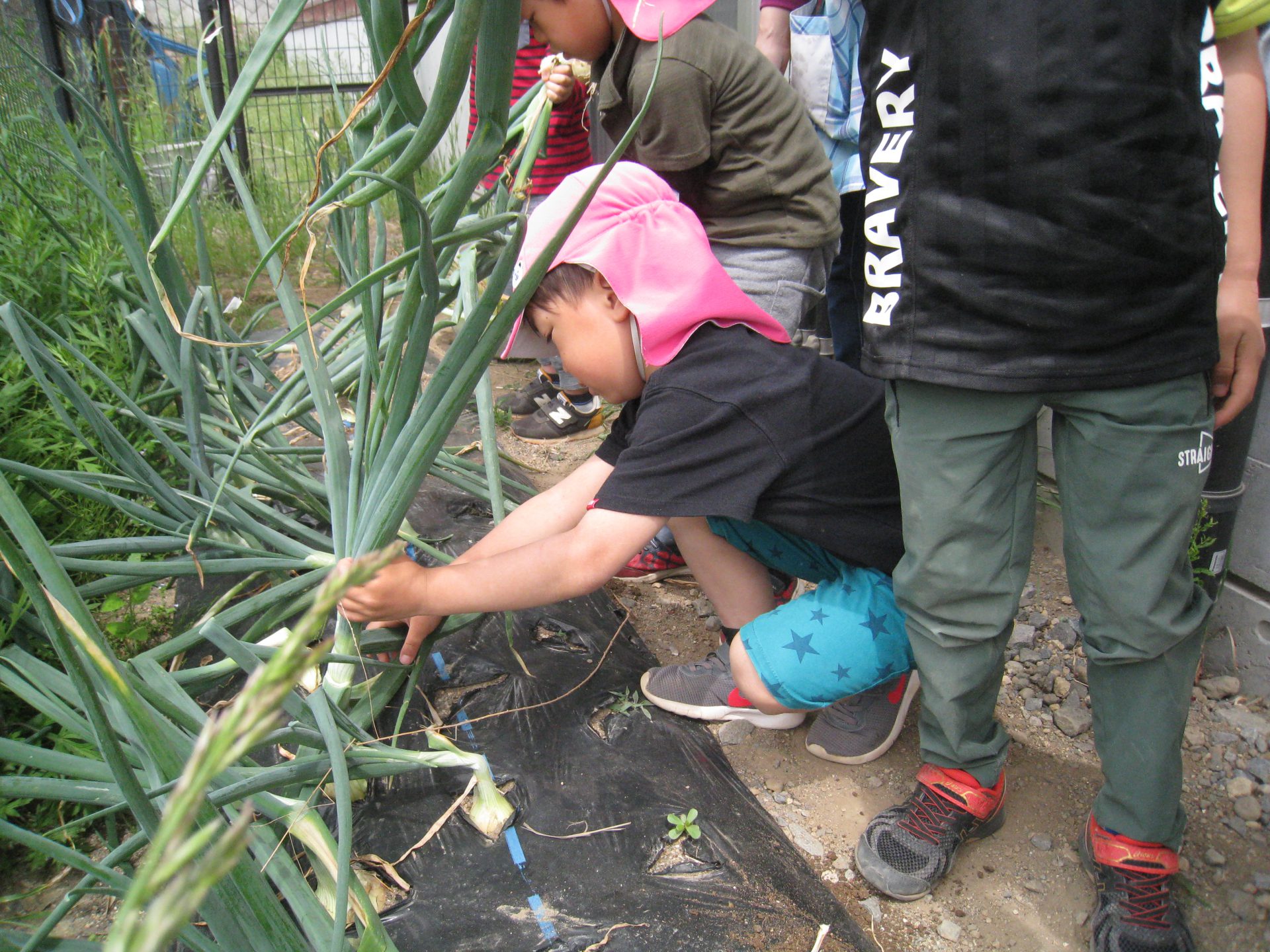 今の年長さんが年中だった頃。畑に玉ねぎを植えました。