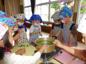 「茹でると草の色が変わるね!」