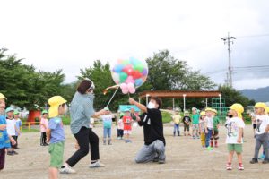 ねらいにあげた、“バルーンリリース”は直前まで天候が心配されましたが、天気も子ども達に味方してくれました!