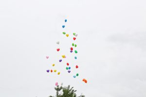 それぞれの年齢や個人によって感じ方は違うと思いますが、沢山の風船が空に飛んでいく様子を見ることができることは子ども達にとって心の財産になると思います。