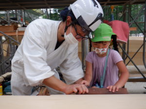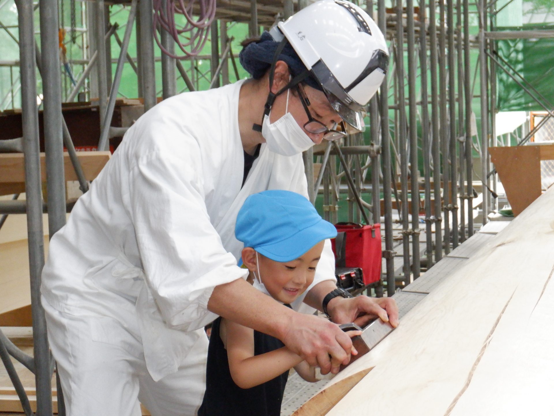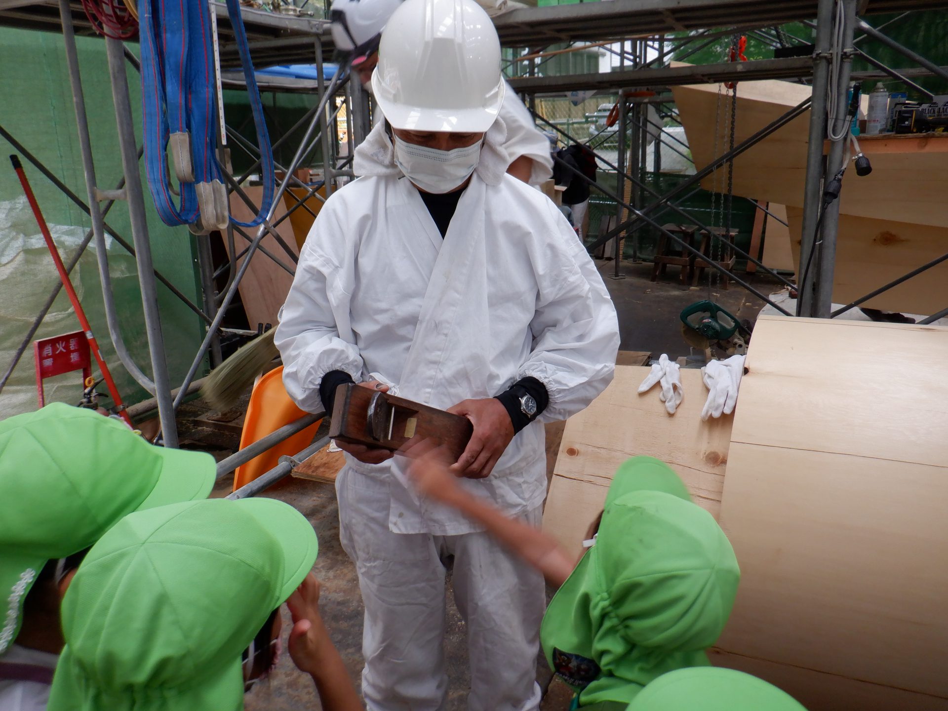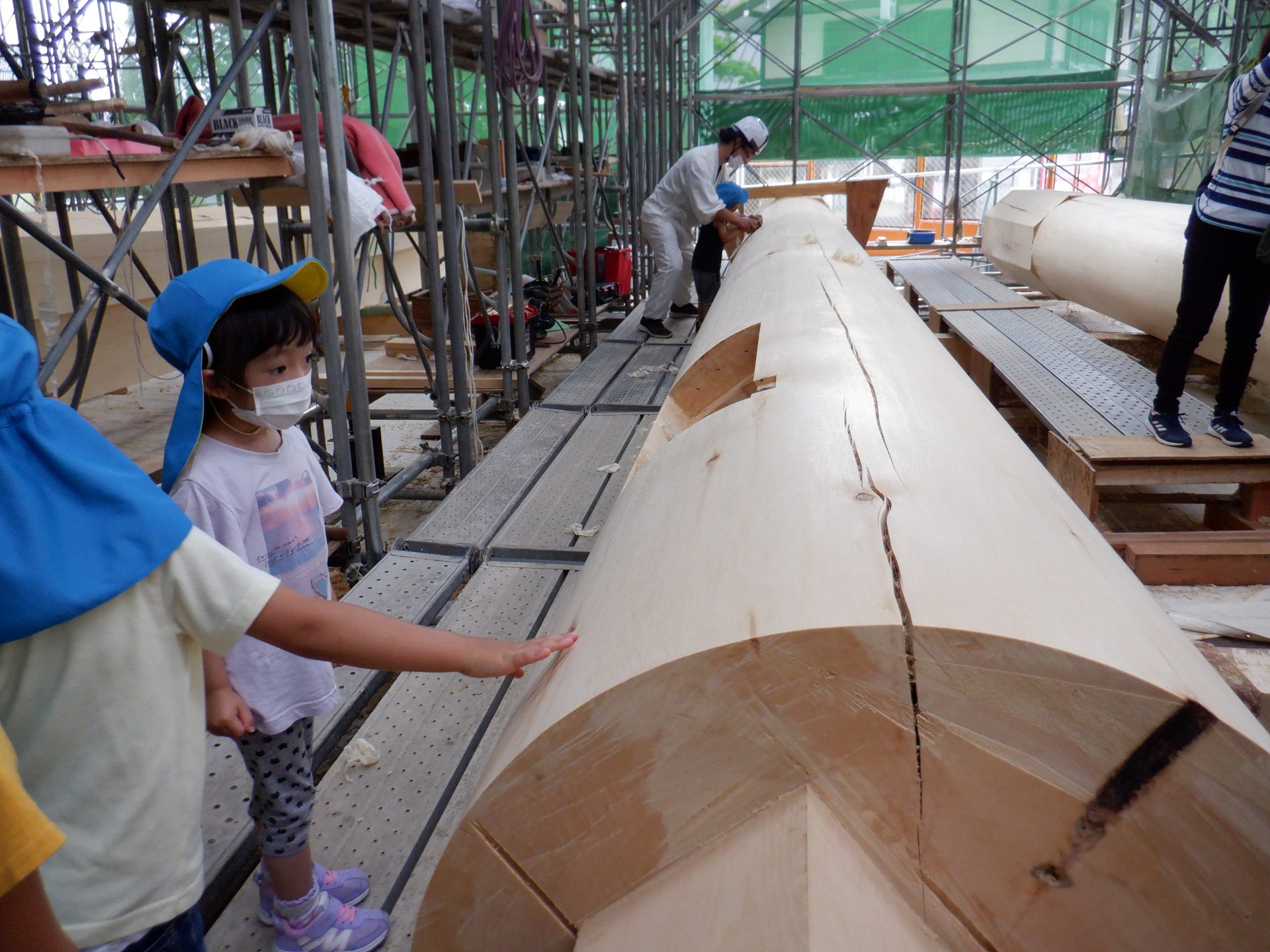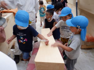 さあ、これから鳥居の柱のかんな削りをはじめるよ。