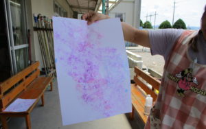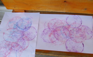 こちらはプラコップの淵に、ジュート麻をつけて紙の上にブクブク ブクブク・・・
