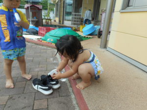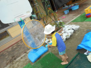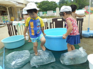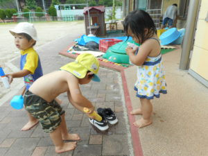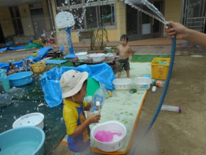 子どもたちは「はやく おみず しよう!」とワクワク。