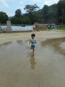 こうしてあそんだ水が川になって園庭に流れていくと思いきり走ったり