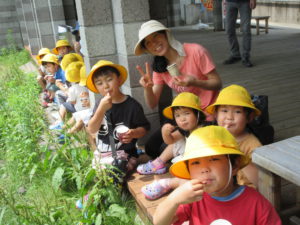 普段から、小さな生き物への関心があり、外に出ればカエル、バッタ、ミミズ、いもむし探しを楽しみ、部屋では図鑑ばかり見ている子どもたち。今回は水の中に住む生き物に触れることで、更に関心が高まったと思います。子どもたちは「飼う」と簡単に言いますが、飼育するということは、小さな命を大切にするということ、、、