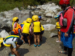 今年は7月の豪雨で伊藤沢も上流から倒木や石が流れ、沢へ降りるところも流されてしまいました。伊藤沢では遊べないとあきらめていましたが、地域のみなさんが整備してくださりこの日を迎えられました。他にも子どもたちが安全に遊べるように、ボランティアで地元遠山地区のお兄さんも来てくれました。たくさんの人に支えられて安全に遊ぶことができることに感謝する気持ちを持ってもらいたいことと、川の中は思うように歩けなかったり、長く水に入っていると身体が冷たくなったりなどの自然の怖さを知り、ルールを守って遊ぶことを覚えてもらいたいと思います。