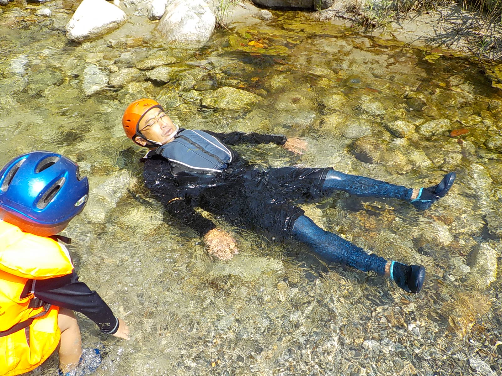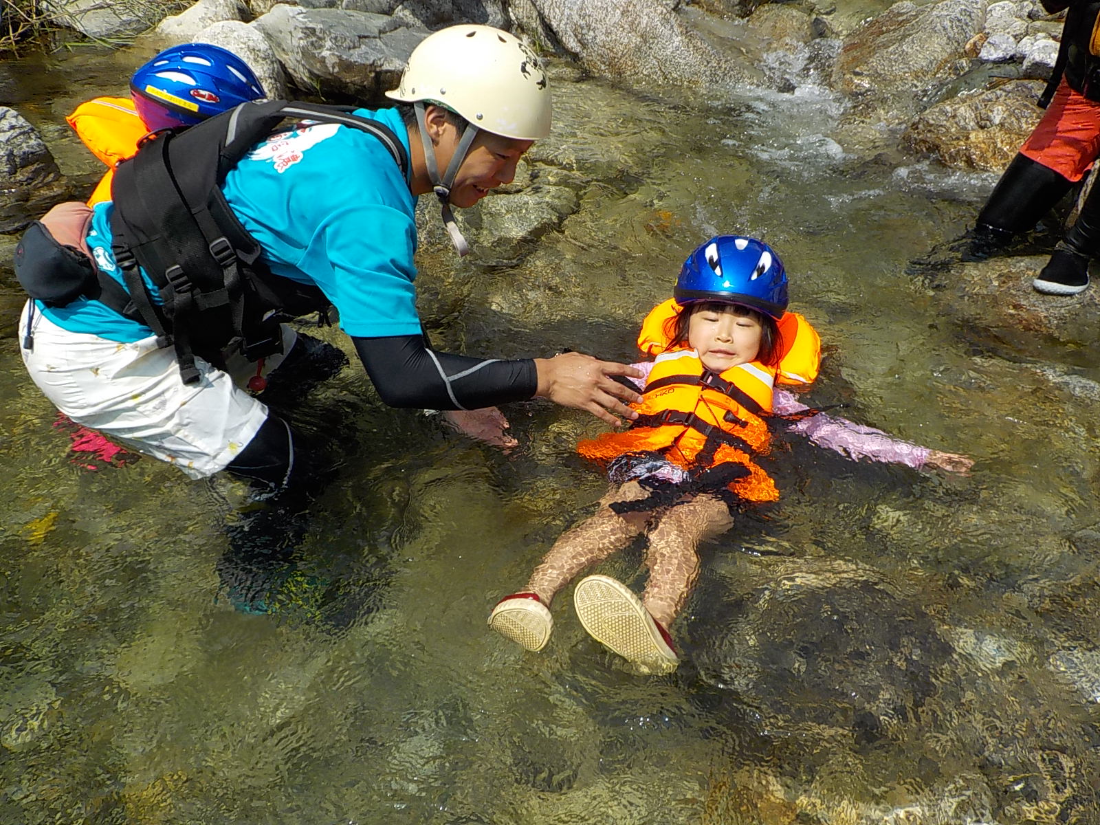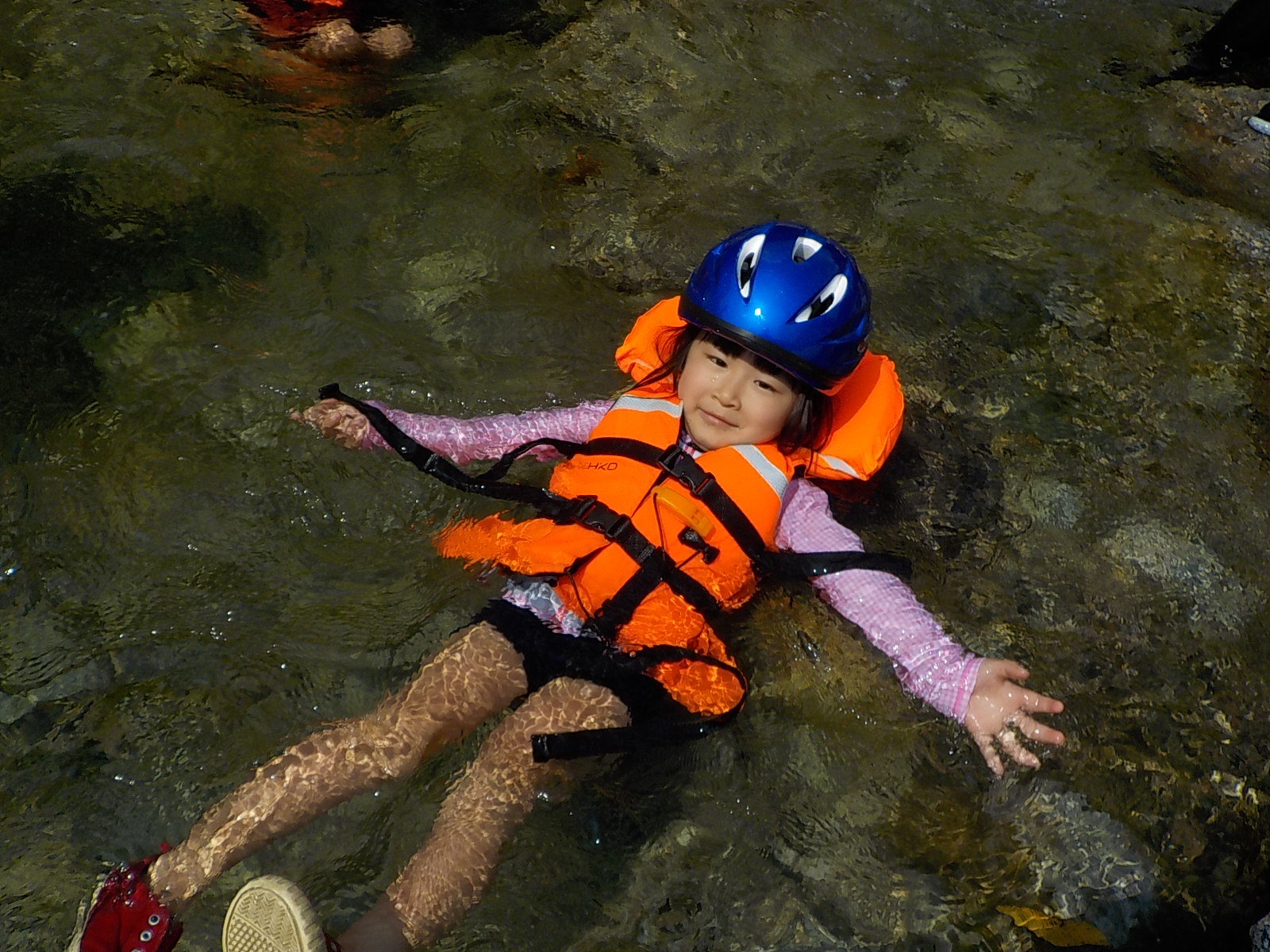 水の流れに自然に身を任すと怖くありません。慣れてくるとコツがわかりこんないい表情です。