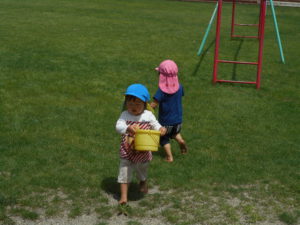 沢山の感覚を味わえる自然物での遊びを通して、感受性豊かに育ってほしいと思います。