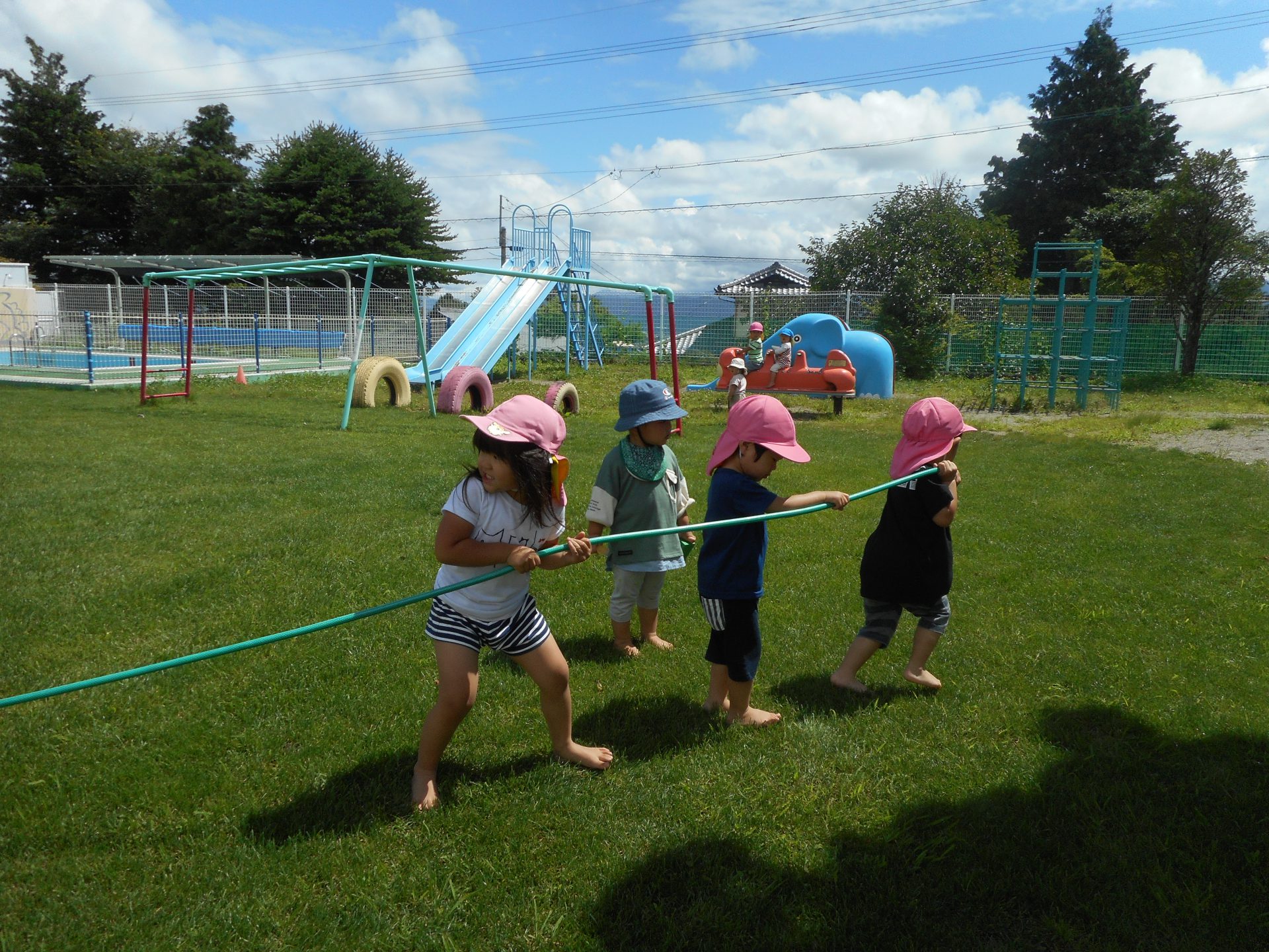 「砂場までホースを運ぶよ」「よいしょ よいしょ」