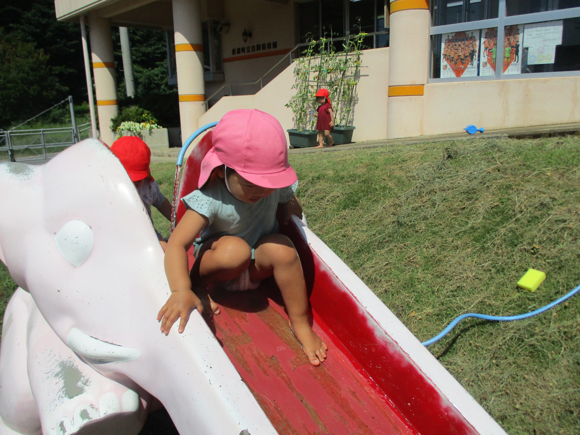 だんだんとなれてくると自分の足や保育士の足に水をかけて涼んでいましたよ。