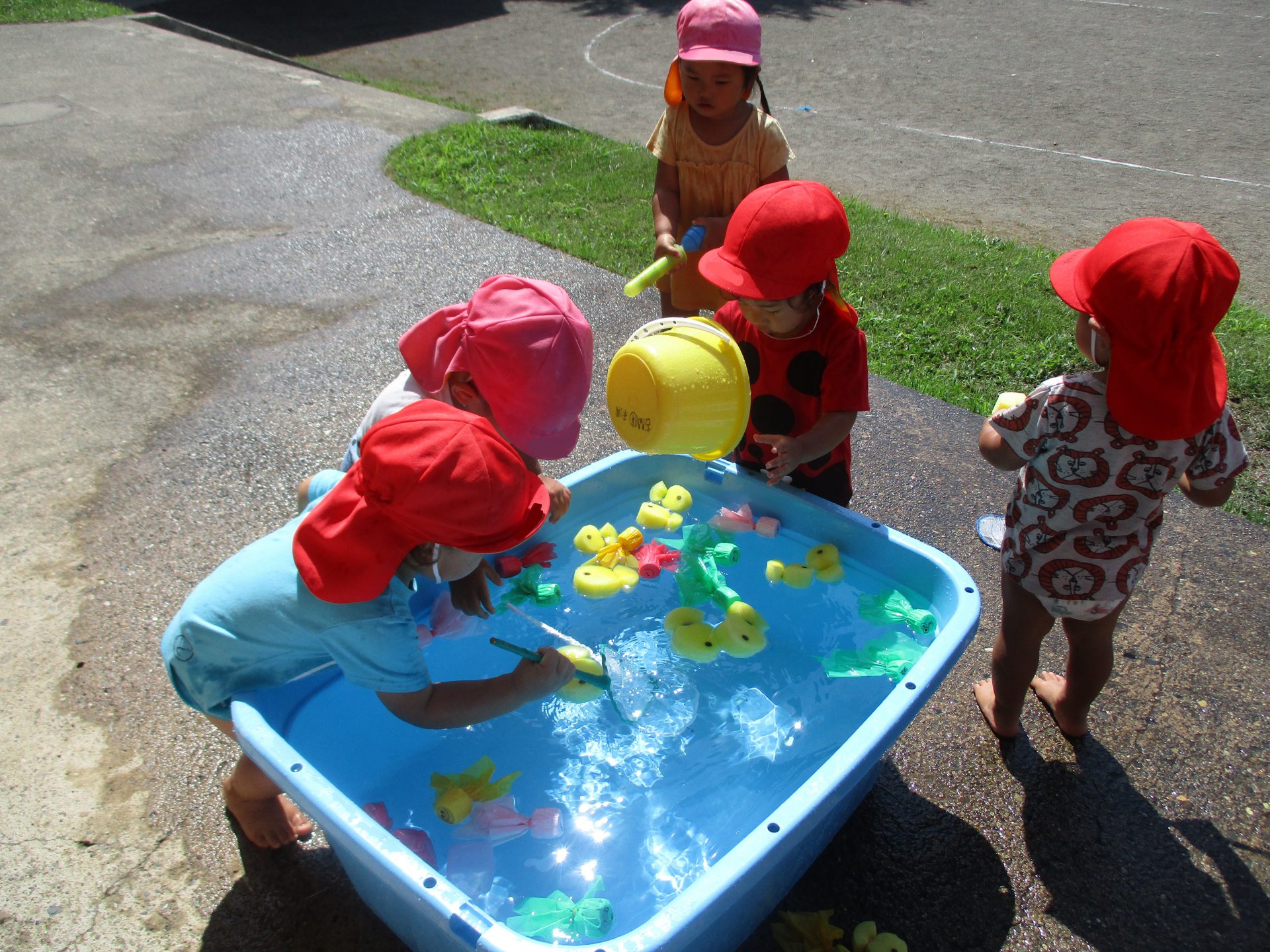 大きなタライでは金魚すくいをしました。