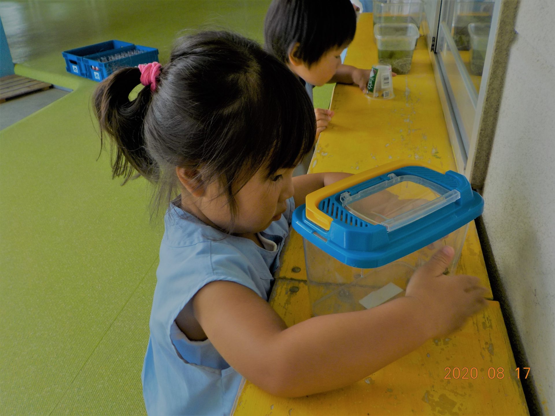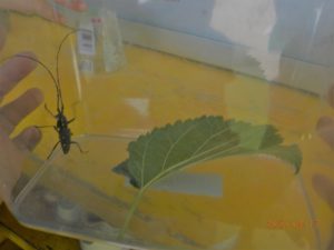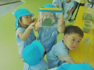 園長は「この虫羽があるから飛んじゃうかもよ」と言うとすぐに虫かごや飼育ケースを取りに行く子がいた。