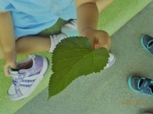 なるべく大きくて硬い葉っぱを選んで取ってきた子ども達。さすがです・・・