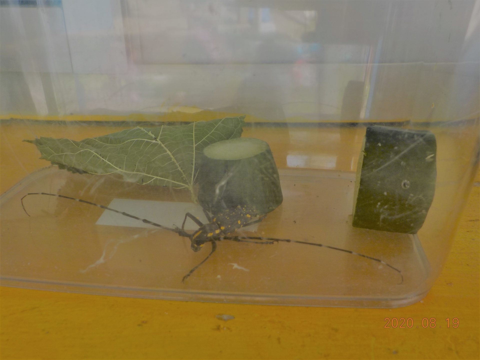 「キボシカミキリムシっていう虫だよ・黄色い模様が星のようでしょ。」