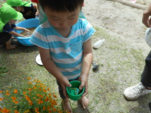 「おおきくなぁれ」 ・・・お花よろこんでいるかなぁ。