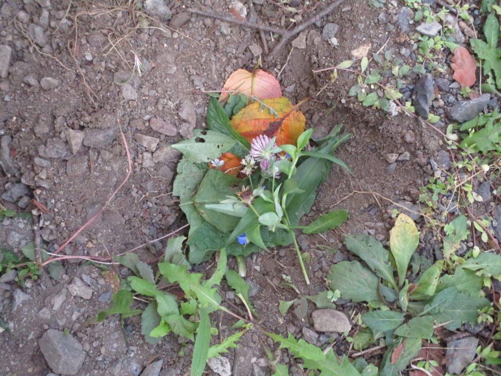 「お花を飾ったら寂しくないかな?」ときれいな花を見つけては乗せてあげる子もいました。