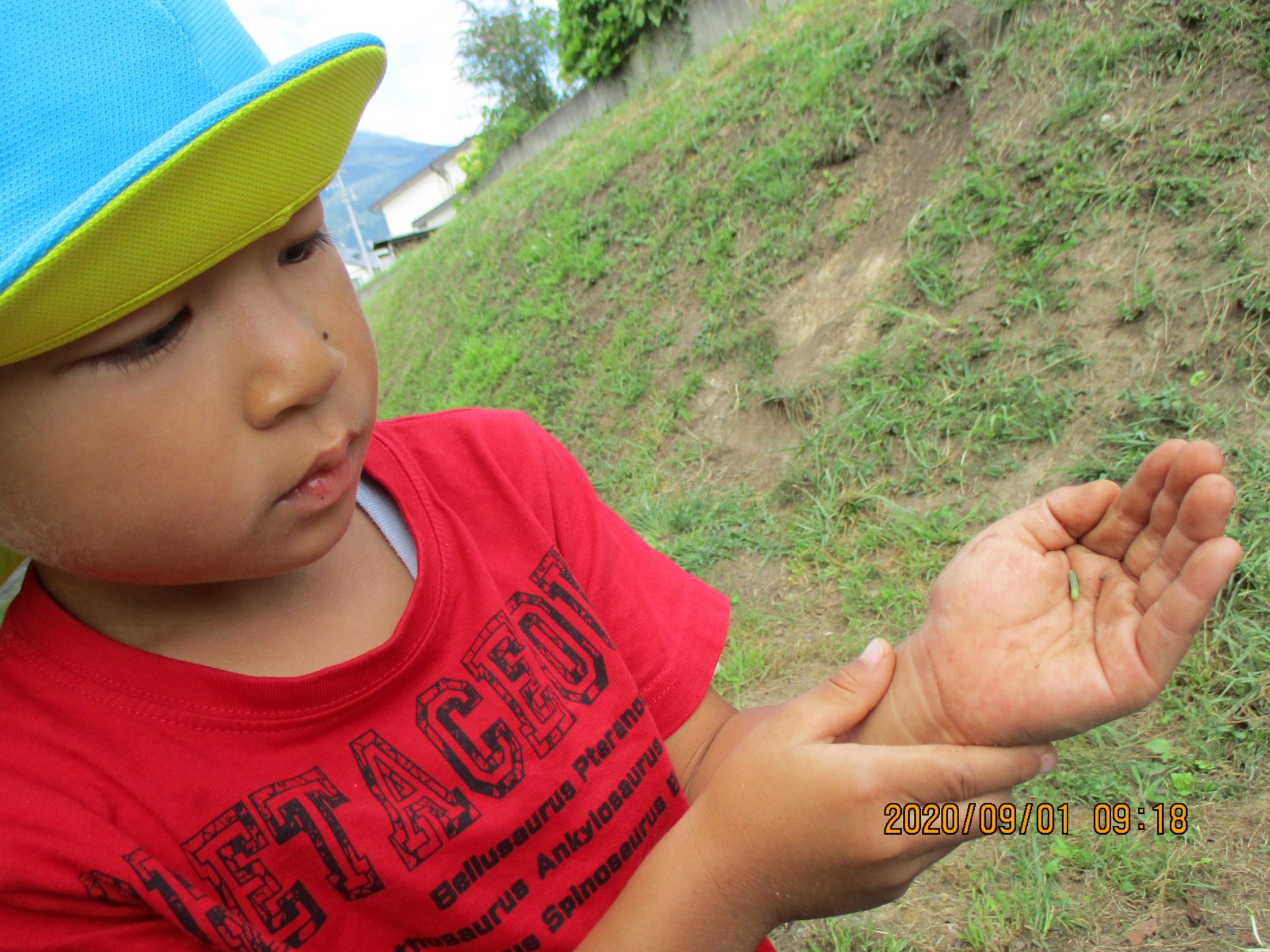 そして、園庭でまだ少し小さなカナヘビを見つけました。