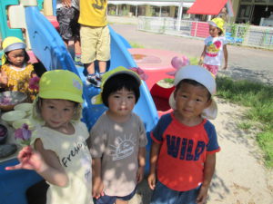むくげの花が咲く季節になり、自然と子どもたちは花に興味を持ち、拾ったり、触ったり、集めたりします。自然にあるものを使って子どもたちが考えてごっこ遊びをし、友だちと関わっていきます。一人の子が発信したことがたくさんの関わりを生んでいます。自然に・・・自然に・・・子どもたちの遊びが展開されていくことを大切にしていきたい。そして、来年も遊びがつながっていくことを願っています!来年もきれいにむくげが咲きますように!