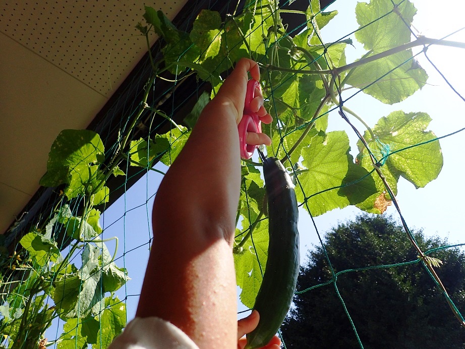 本当にたくさんのきゅうりが取れて子どもたちも収穫の喜びを味わうことができたと思います。給食でおいしくいただきました。