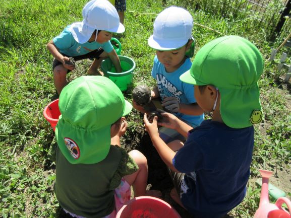 友達との関わりが発展してきた泥団子作り。自分たちがお兄さんお姉さんと意識するようになってきたお散歩。年少児の成長を感じられる良い季節となってきました。