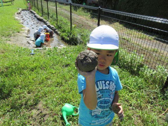 顔ほどの大きな泥団子ができて得意気です。
