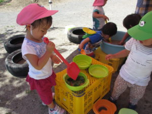そして、最後には大好きな水遊びの材料となり、子どもの創造力は無限大であり、そんなステキな子ども達と過ごせる私たちは幸せだなあと思いました。