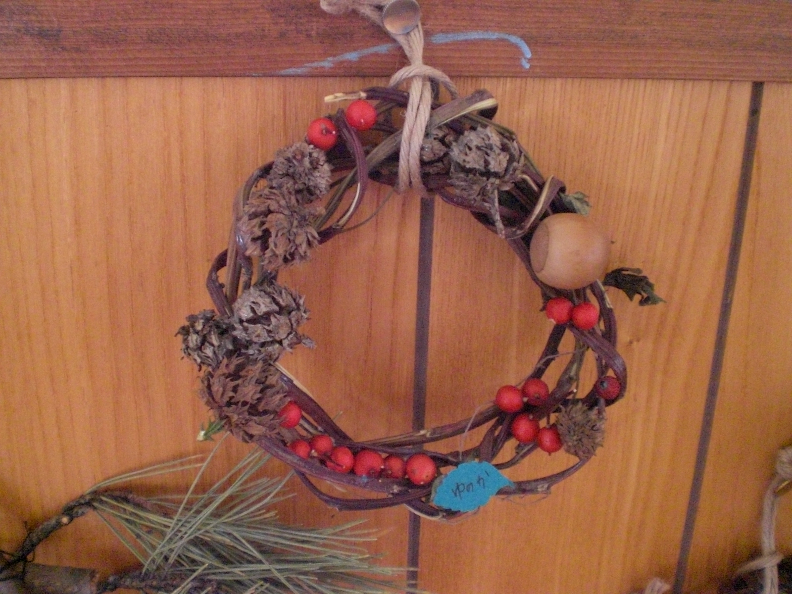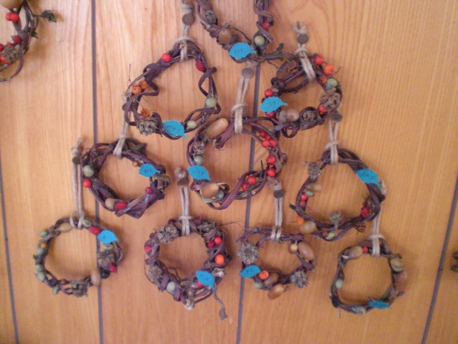 そのままではさみしいかと、お散歩で拾った木の実やどんぐりを付けてみると・・・