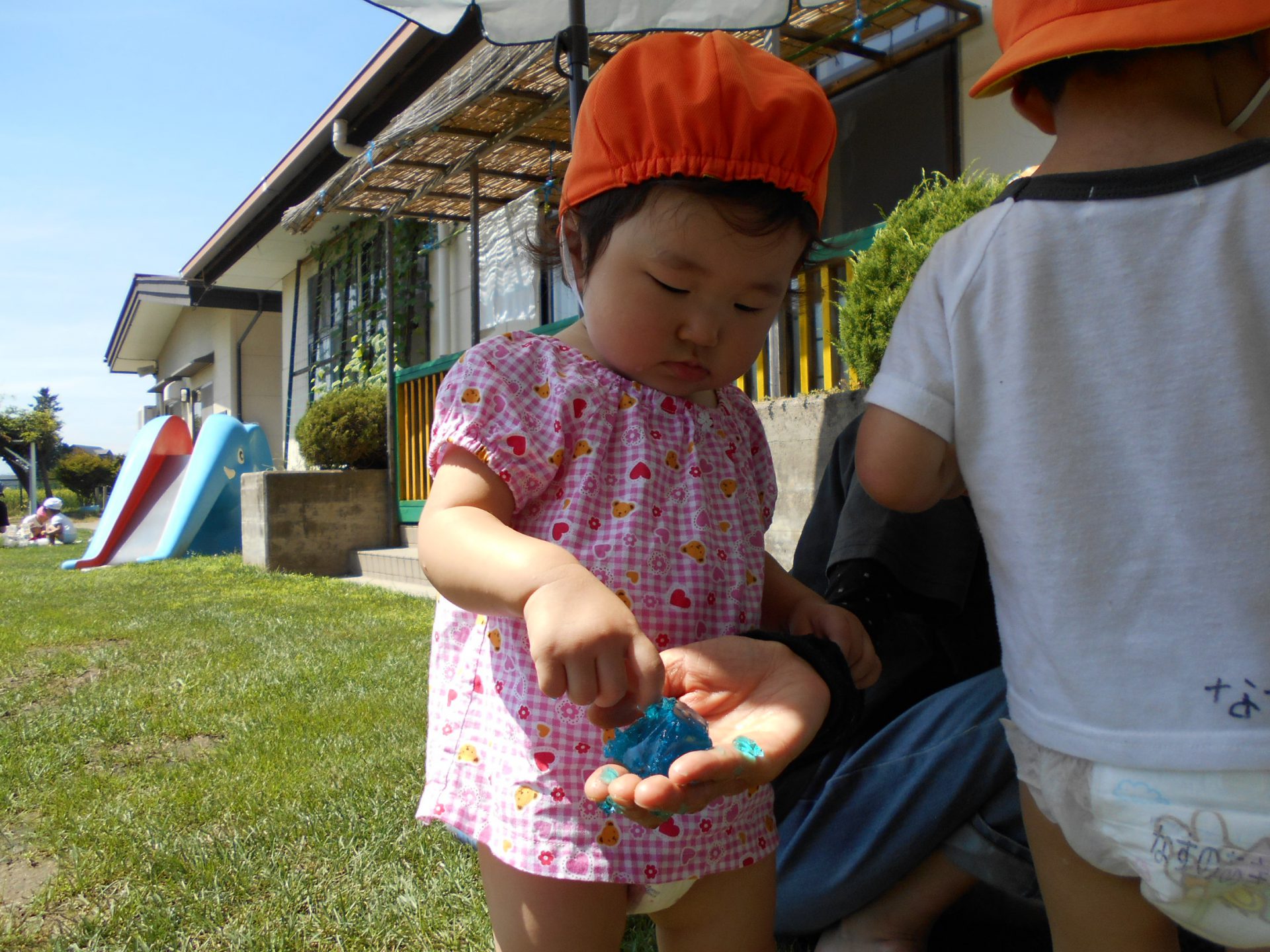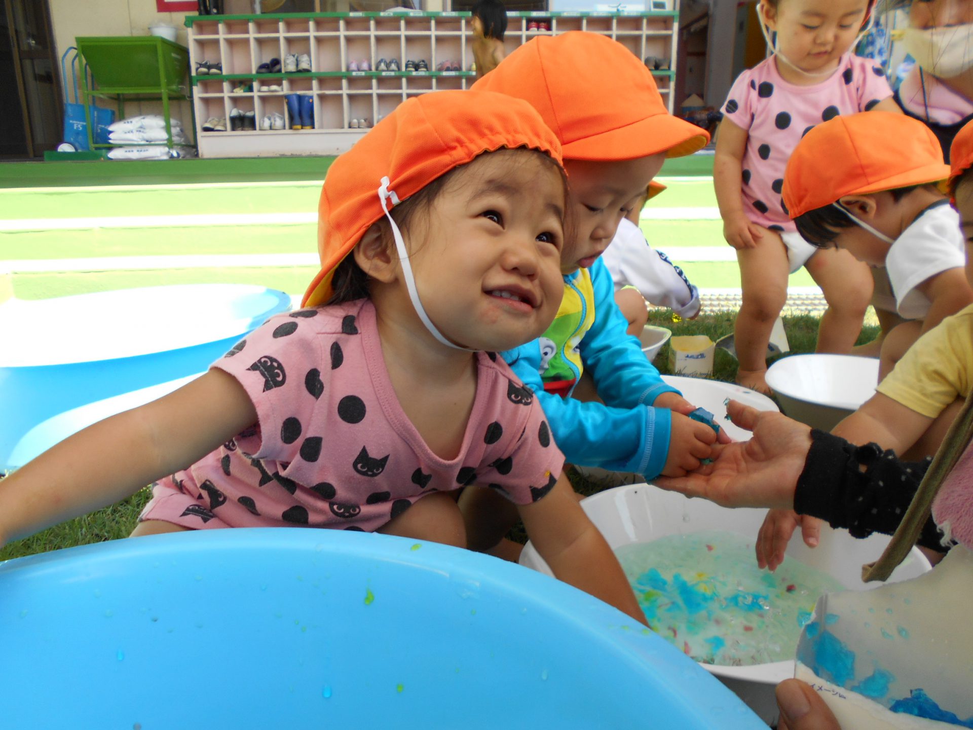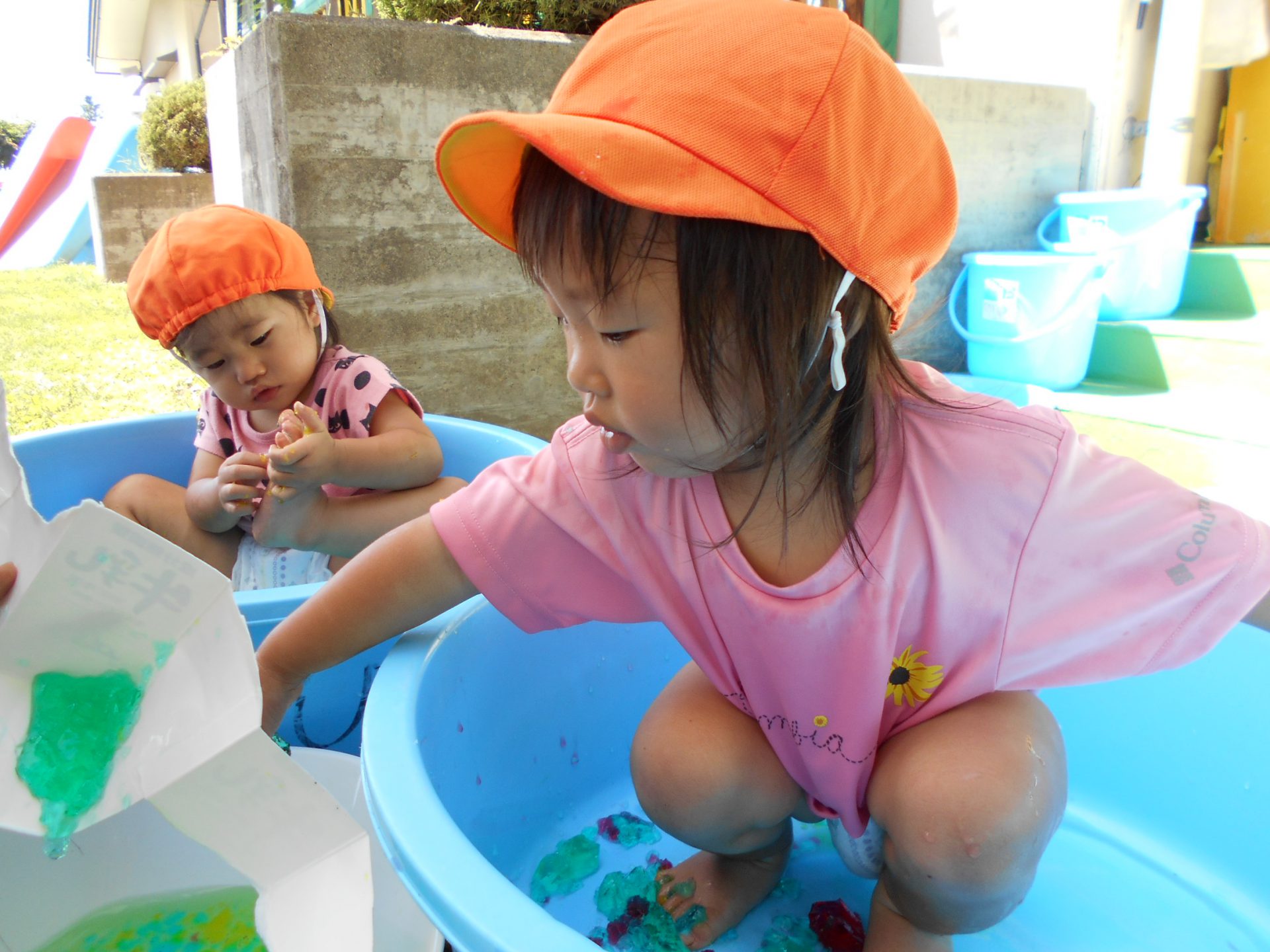 夏の暑い日、初めてのゼラチンあそびを楽しみました。