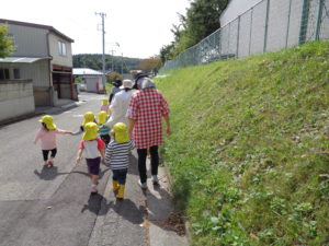 秋の爽やかなお天気だった9月の下旬。0、1,2歳児さん、年中さん、それぞれお散歩に出かけてきました。