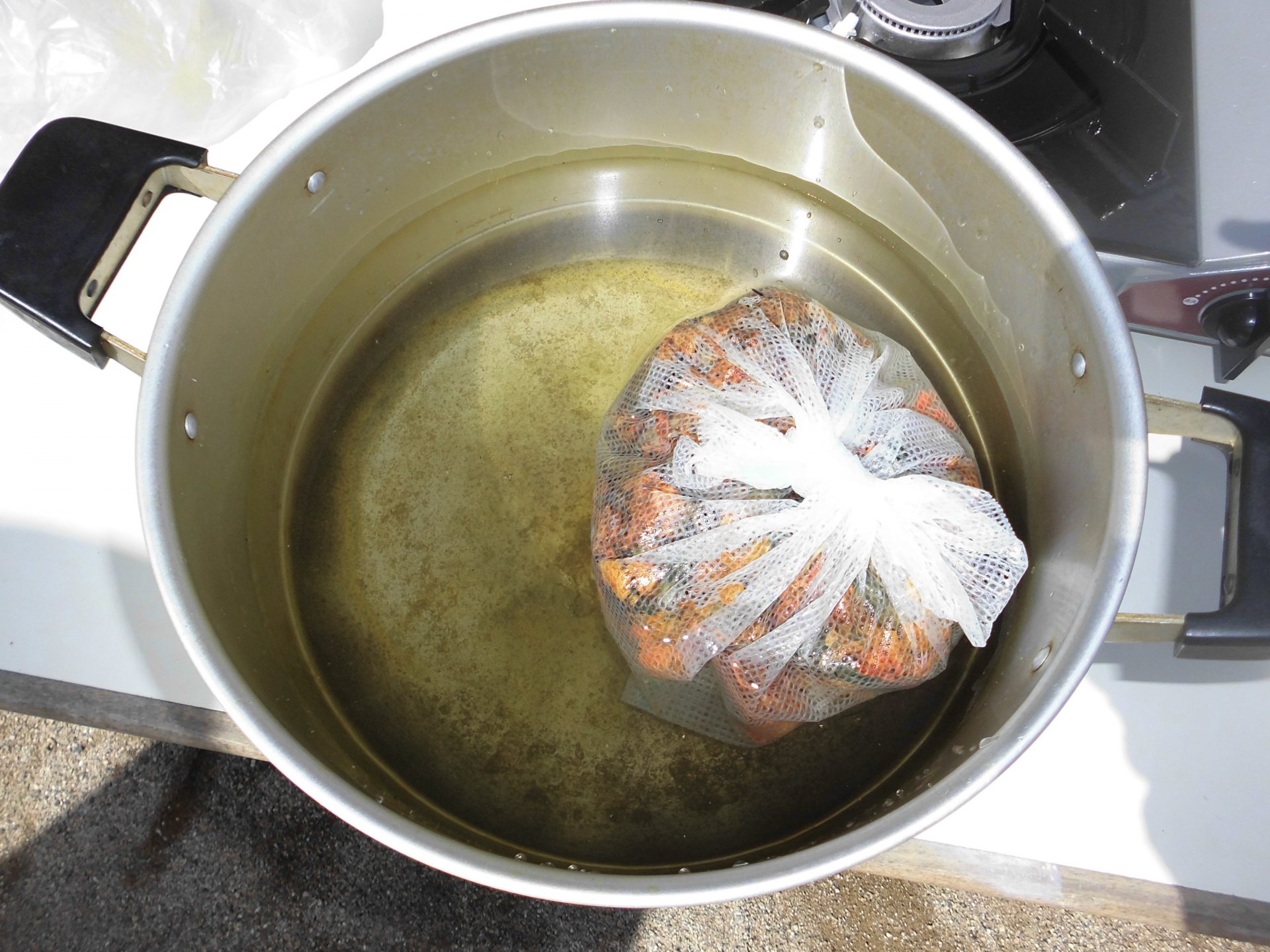 煮出すと「マリーゴールドってくさいね」とにおいの変化も感じていました。