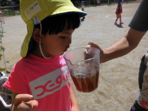 色水を作って遊んだ時には「みつのにおい」「花のにおい」と喜んでいたけれど