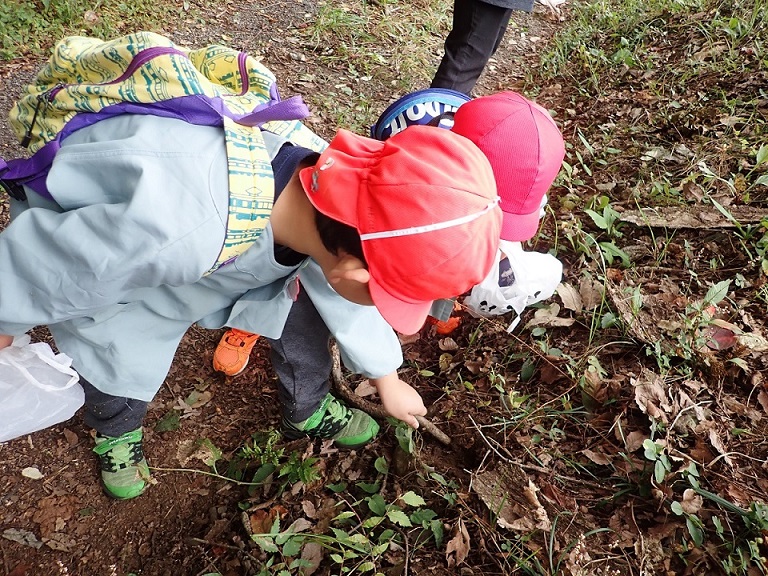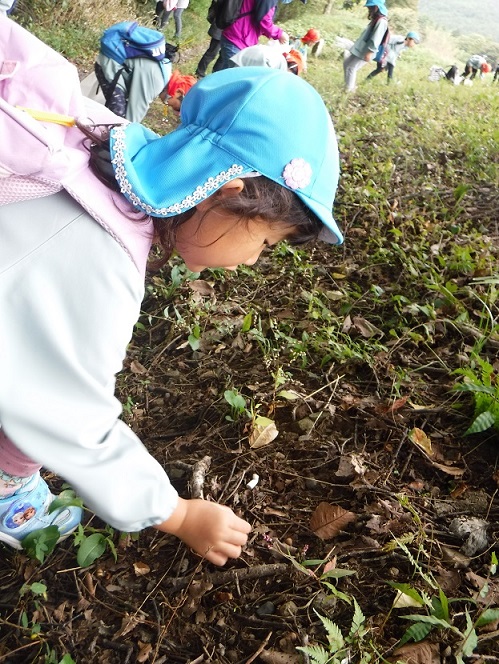 みんな夢中になって、どんぐり拾いを楽しんでいます。