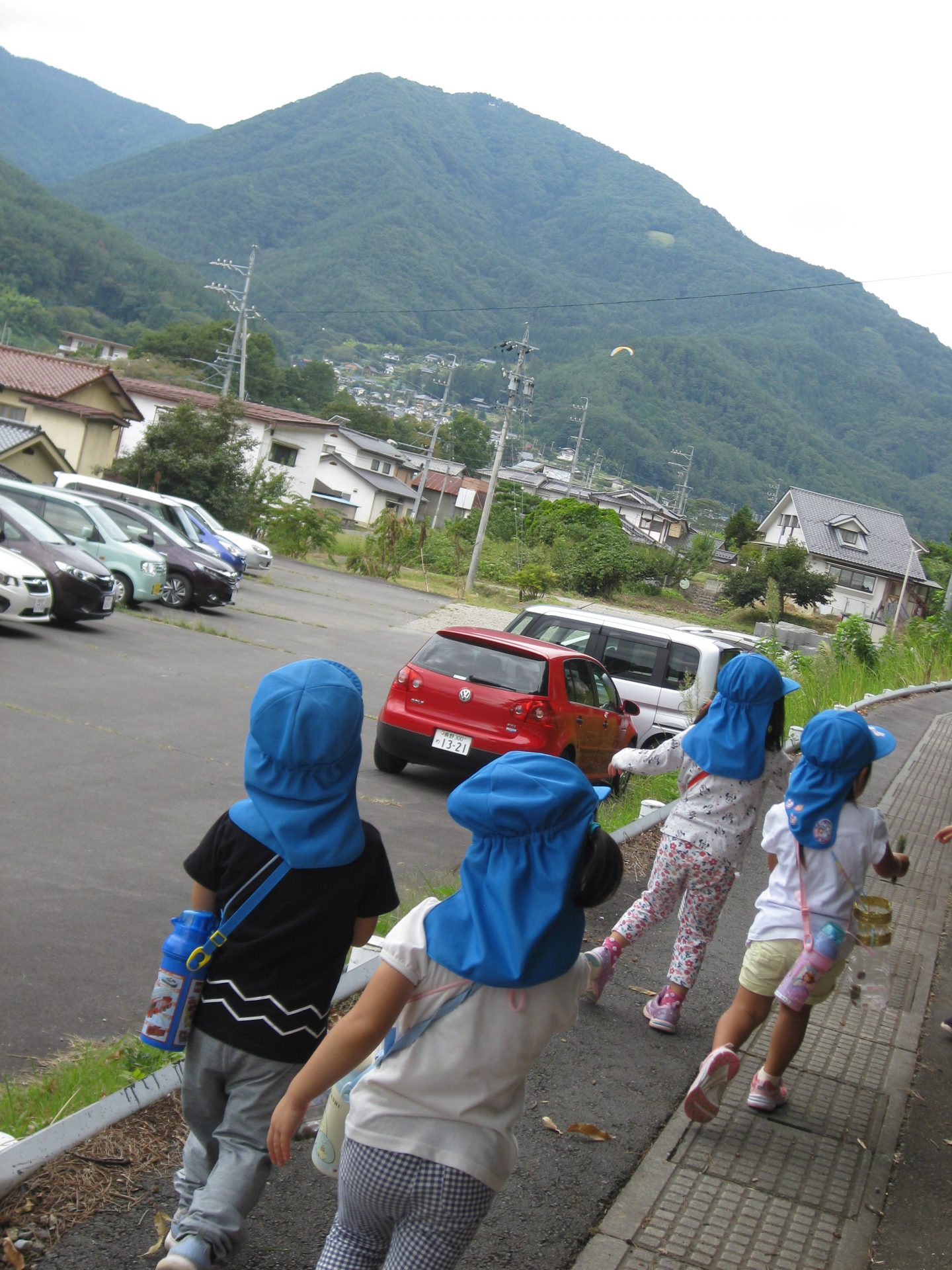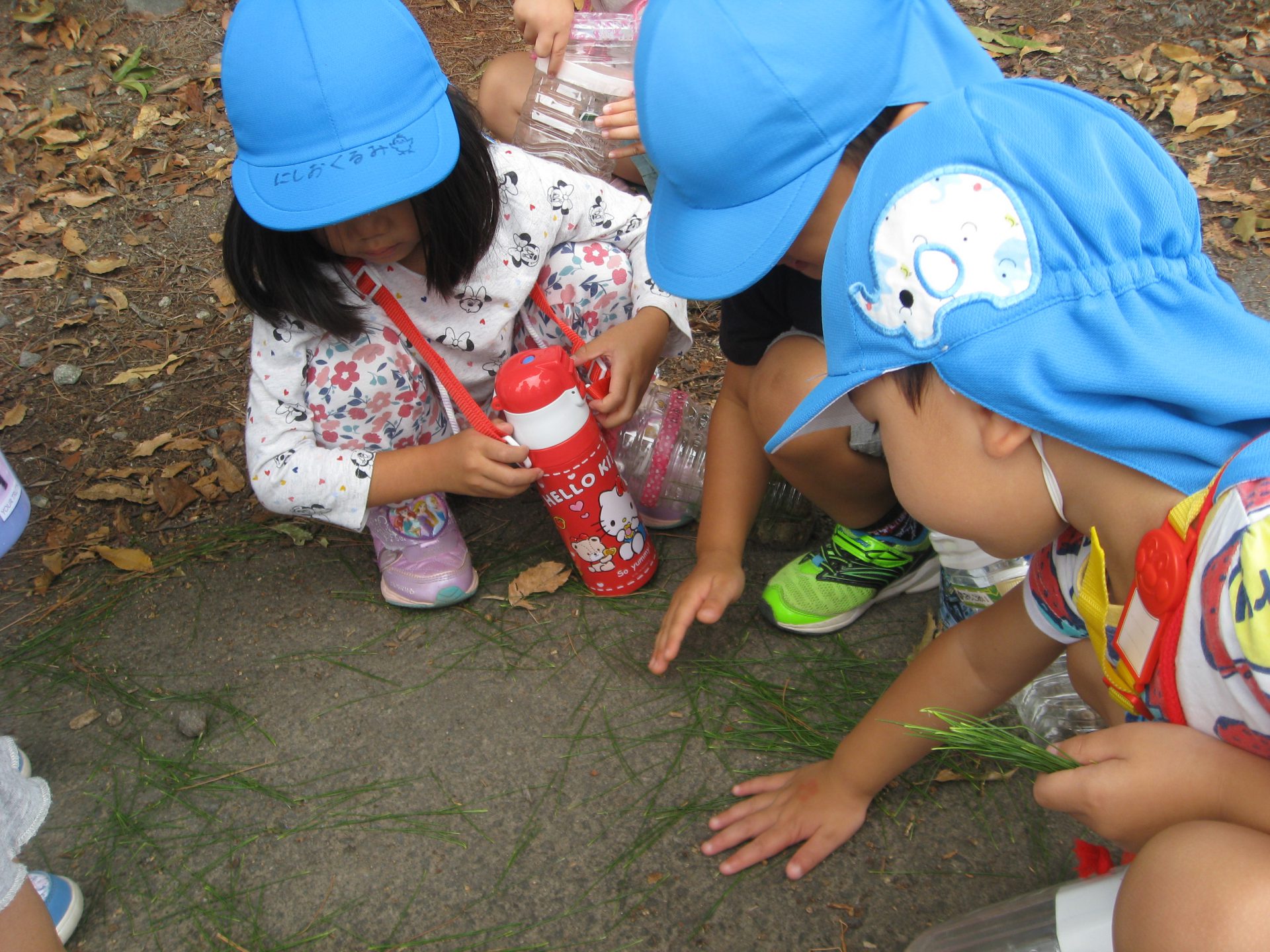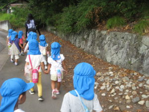 友達や保育士と「お花が咲いているね」「鳥が飛んでるよ」「犬がいたよ」と様々な動植物を発見しながら歩いていきます。