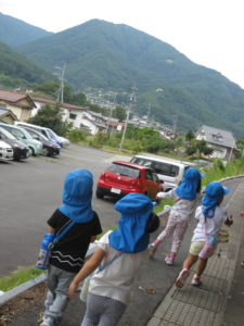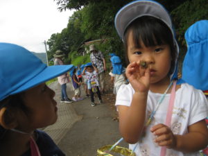 すみれ・つくし組の年少組のみんなで湯坂山にお散歩に出かけました。