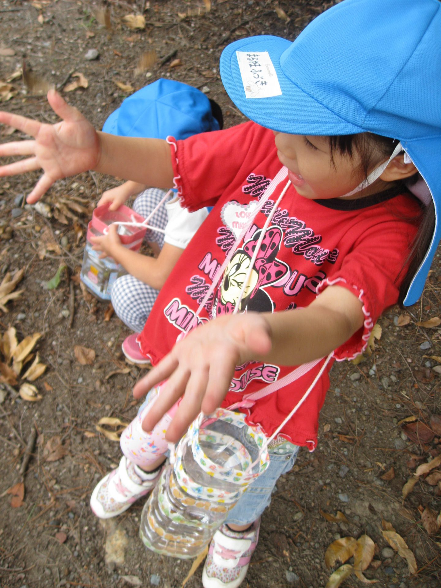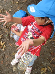 秋の自然物を身近な場所で見つけて遊ぶことができ、大満足の子どもたち。