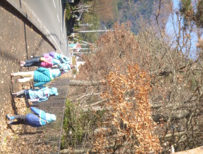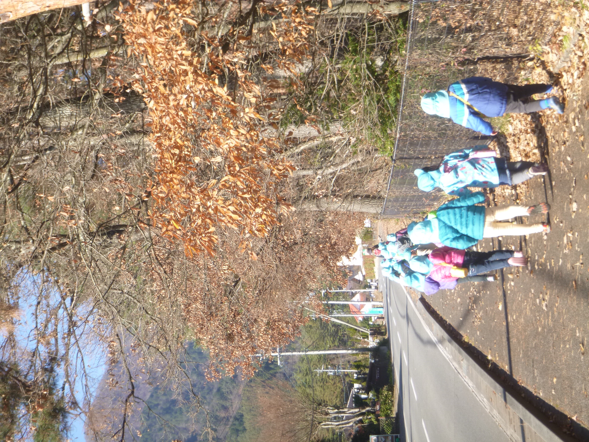 片道3kmの道のり。行きは登りがつづくけど頑張って歩くぞ!!木々の葉も茶色から落ち葉へカサカサ音がするね。