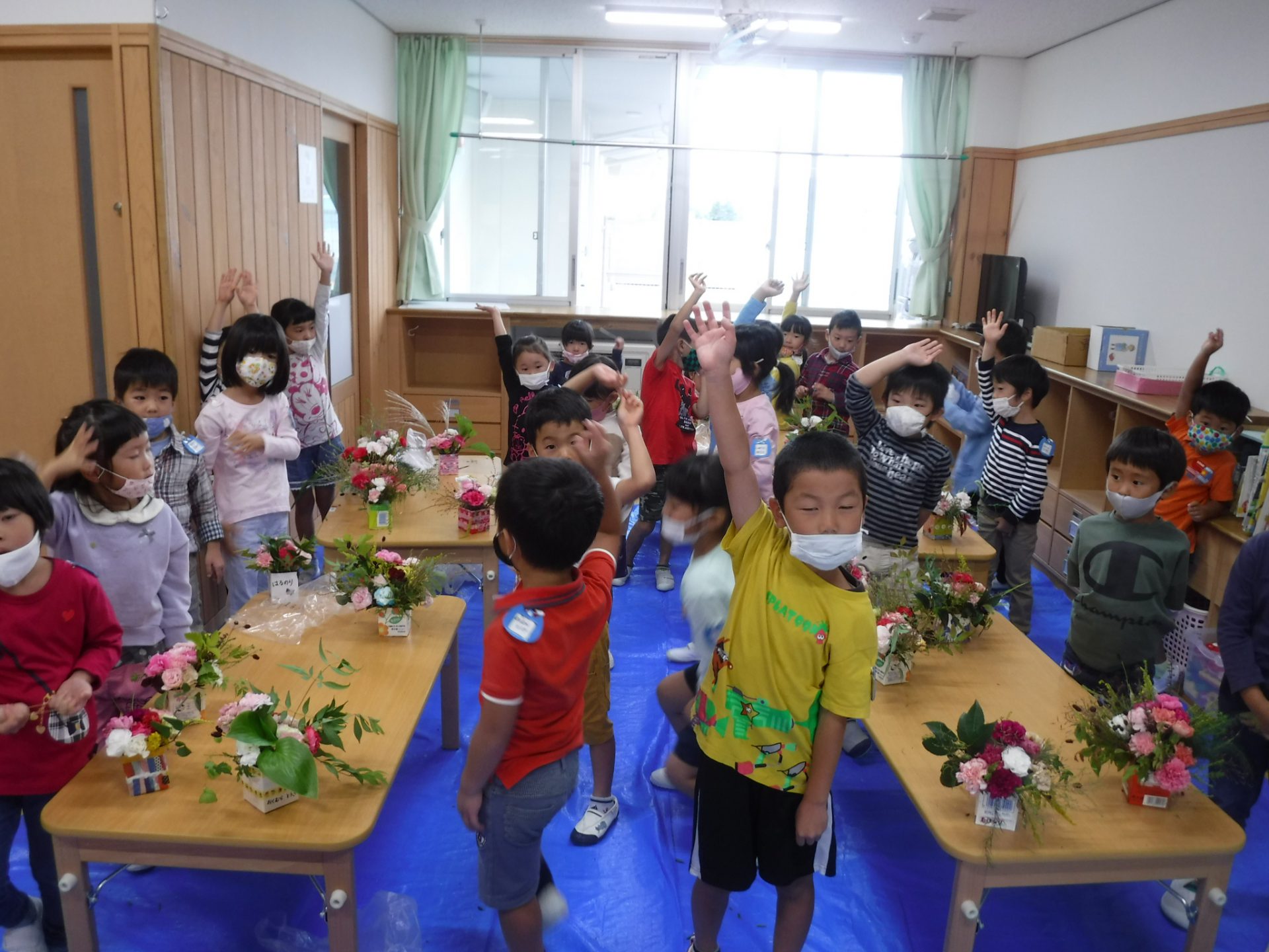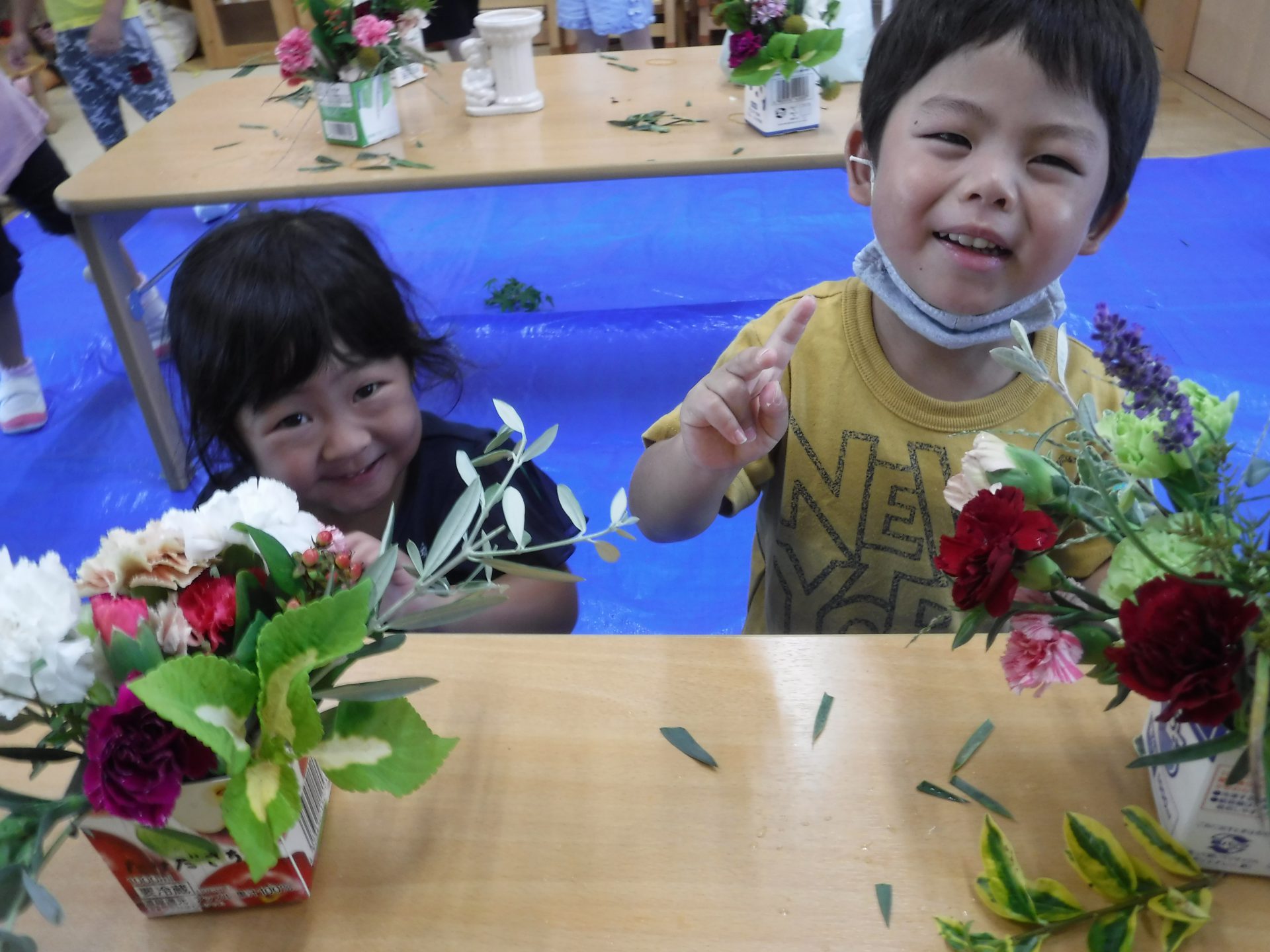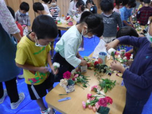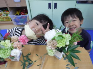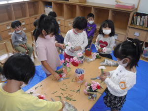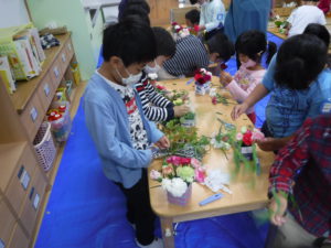 どの子も楽しめ、とても素敵な活動となったフラワーアレンジメントでした。