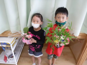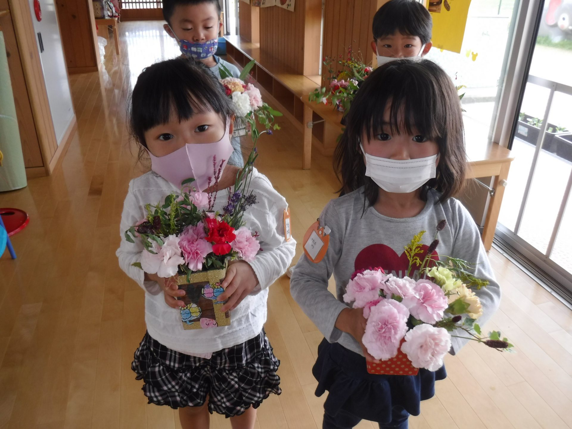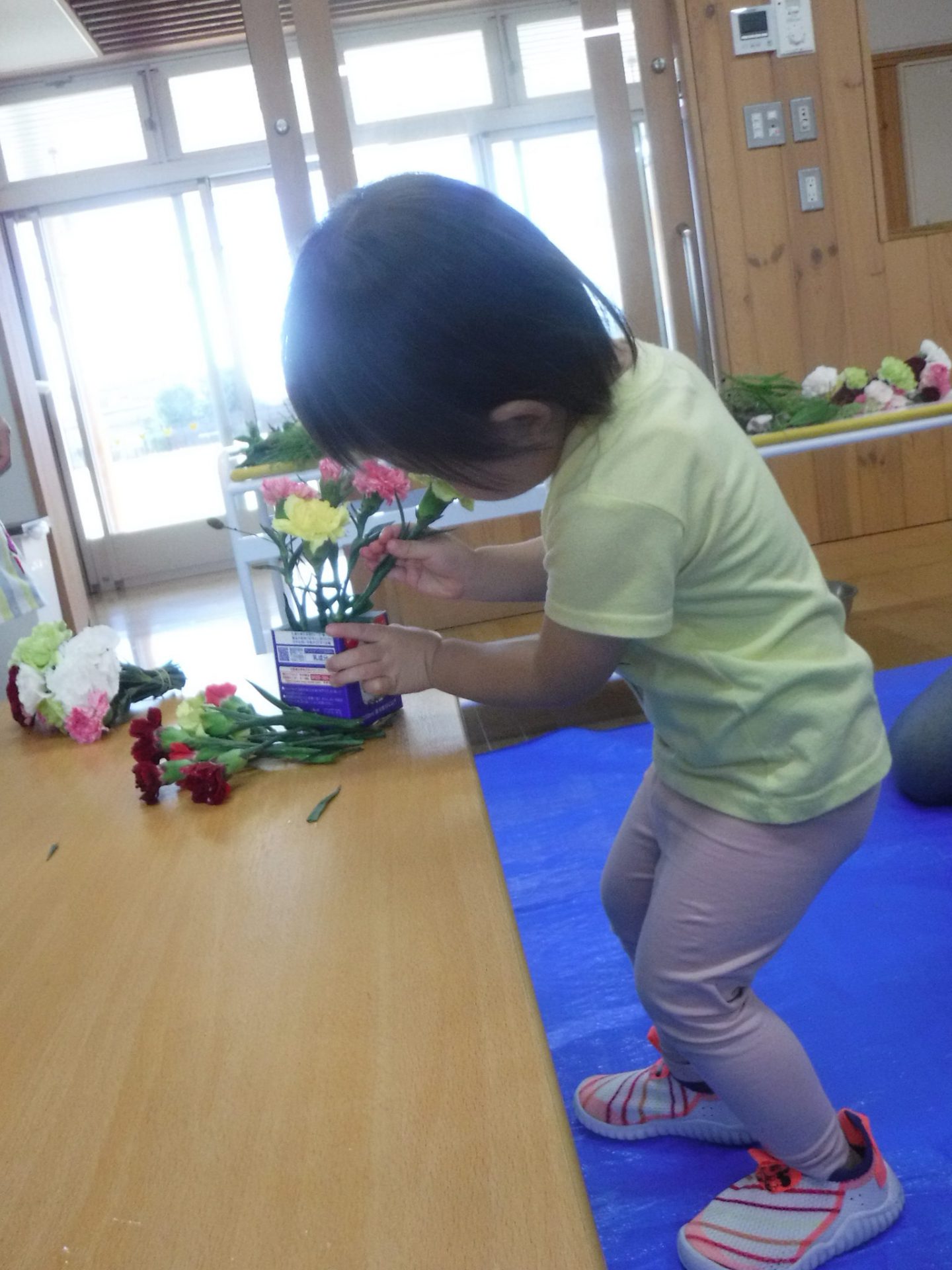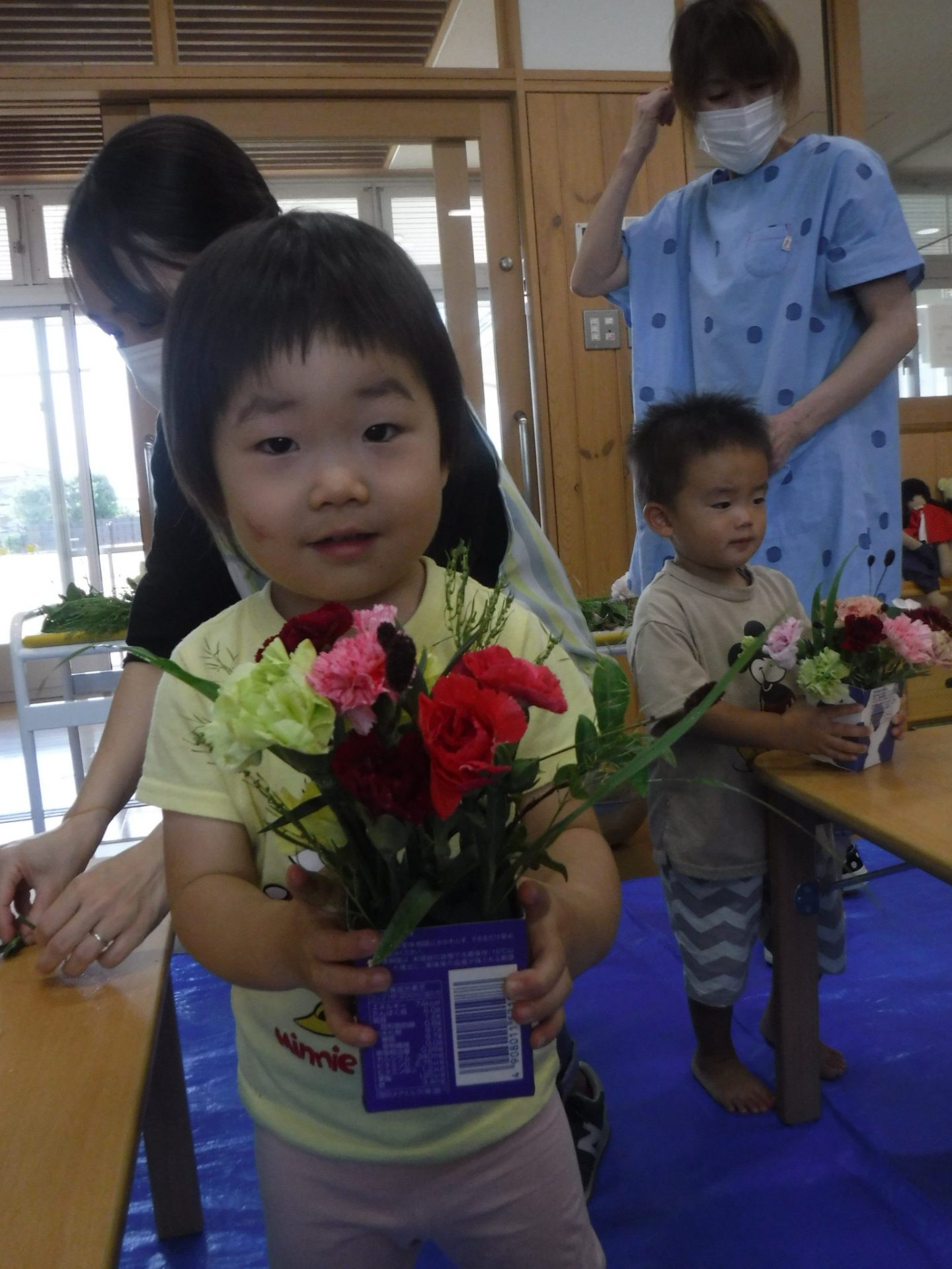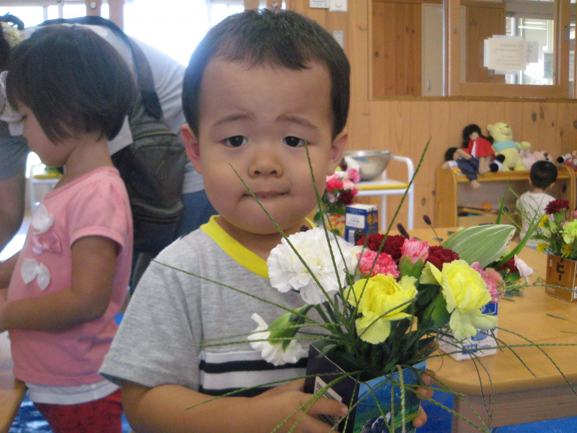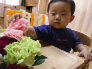 小さな手で大切そうにお花を持ち、目をキラキラさせながら楽しんでいました。