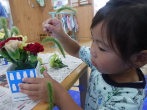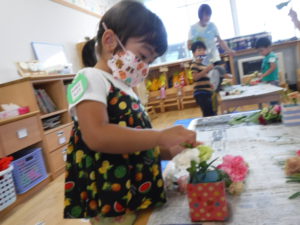3歳年少さんたちも自分たちで一生懸命考えながら生けていました。
