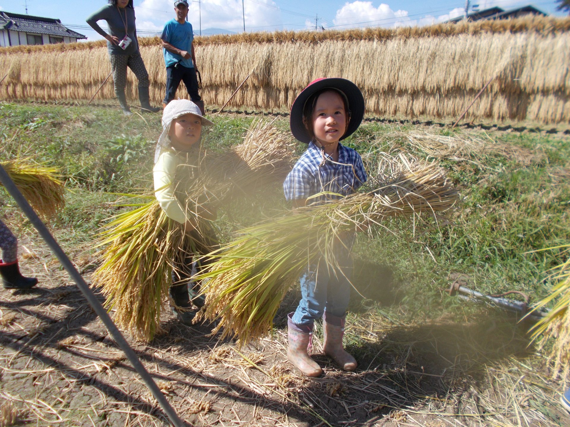 手間暇かけて栽培する無農薬米栽培の過程に気づきながら、収穫の喜び、安心安全な食べ物の必要性に気づく