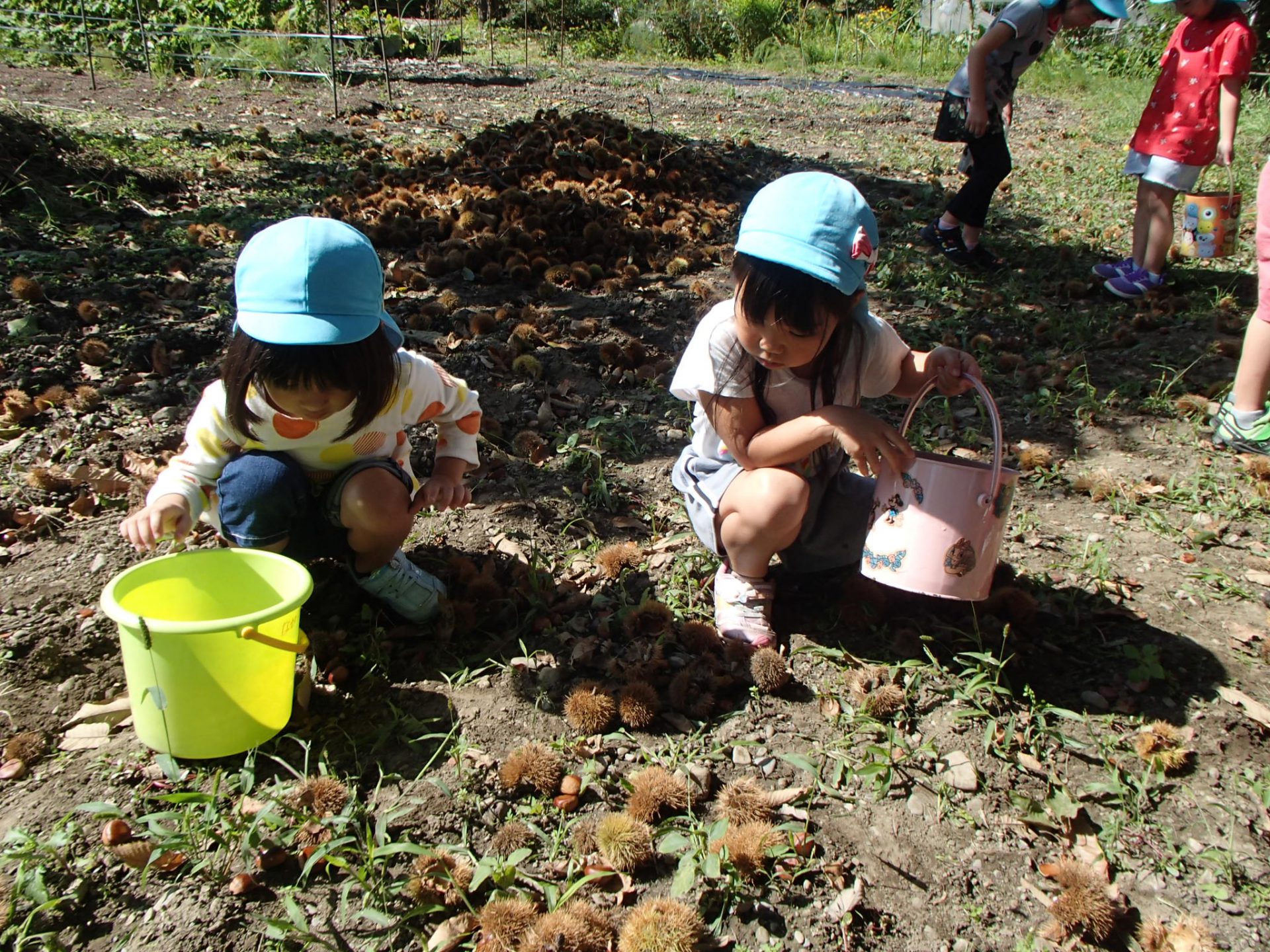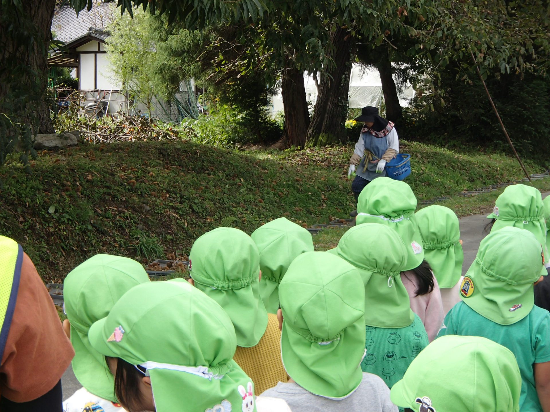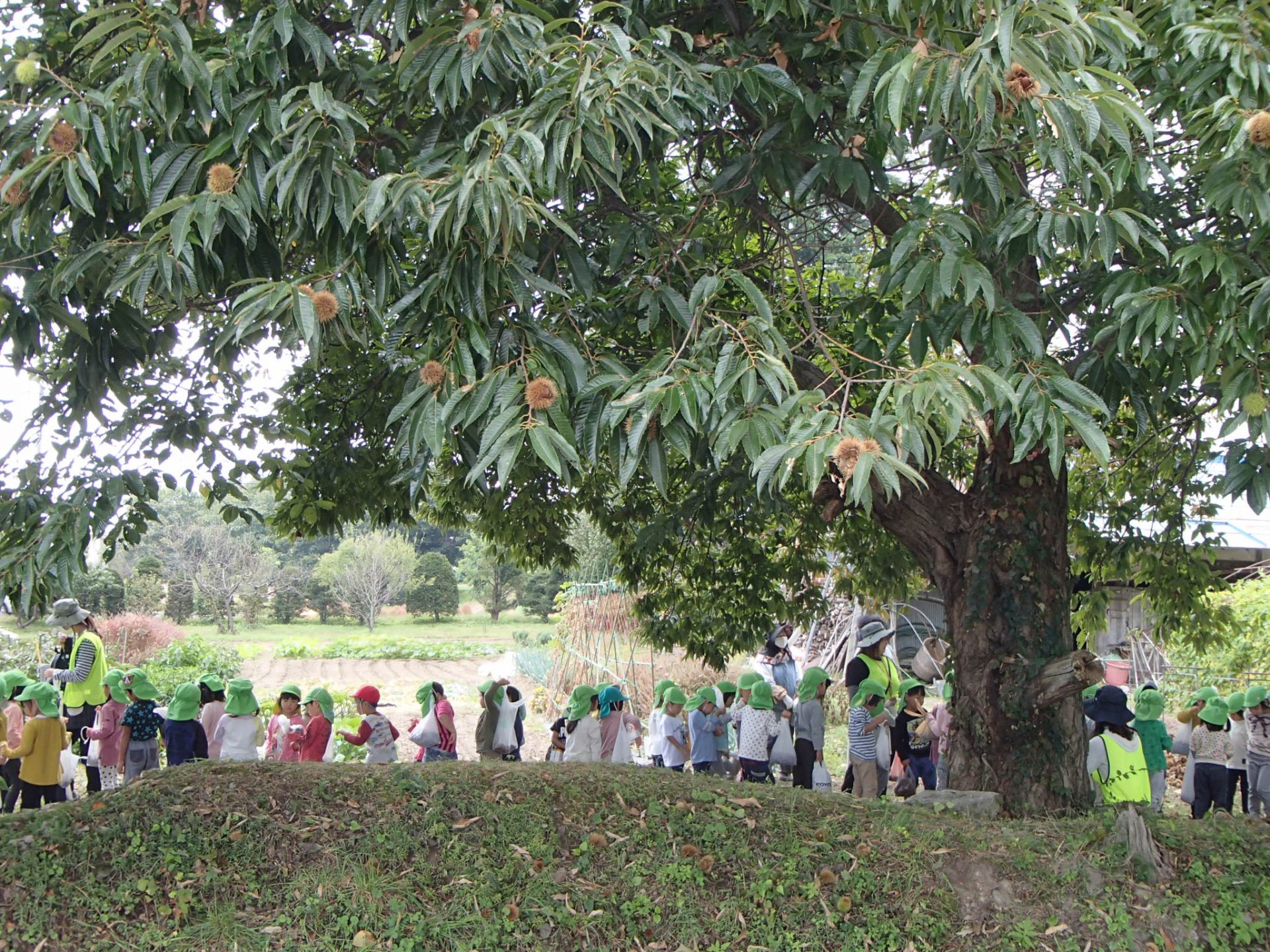 地域の方のご厚意で、年長さんが栗拾いに出発です!