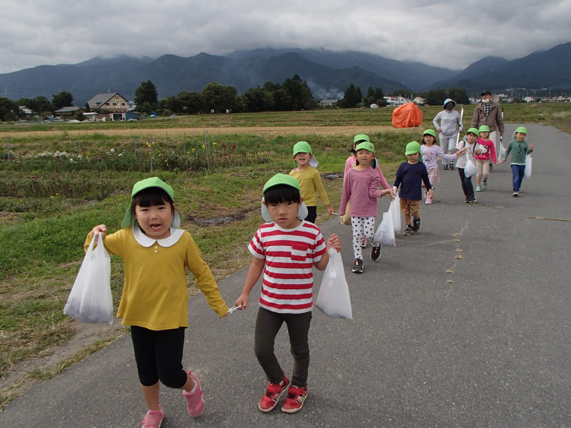 降園時に「こんなにひろったよ~」と見せる子ども達。