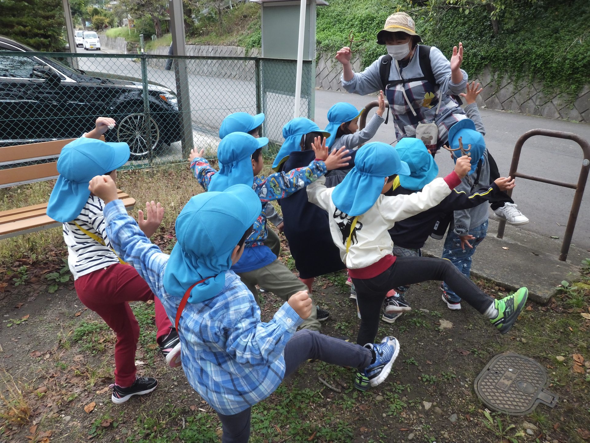 みんな、枝とおんなじポーズ。