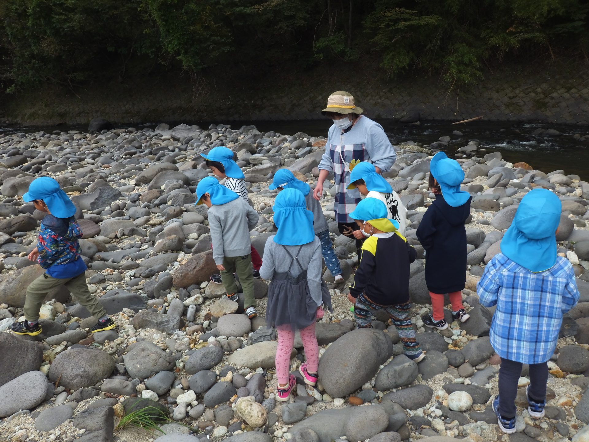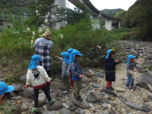 夏に行った川の様子を、みんなで見に行くことにしました。